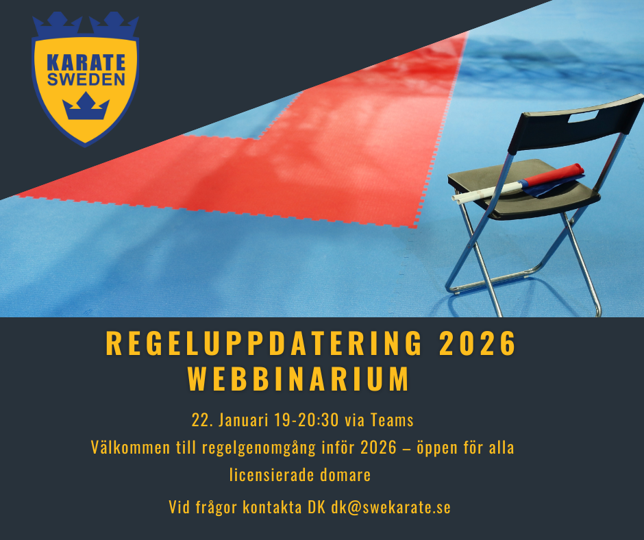 Domarkommittén inbjuder till webbinarium med information om regeluppdateringar inför 2026. Webbinariet är öppet för samtliga licensierade domare och genomförs via Microsoft Teams, den 22 januari, kl 19-20:30. Anslut till mötet nu