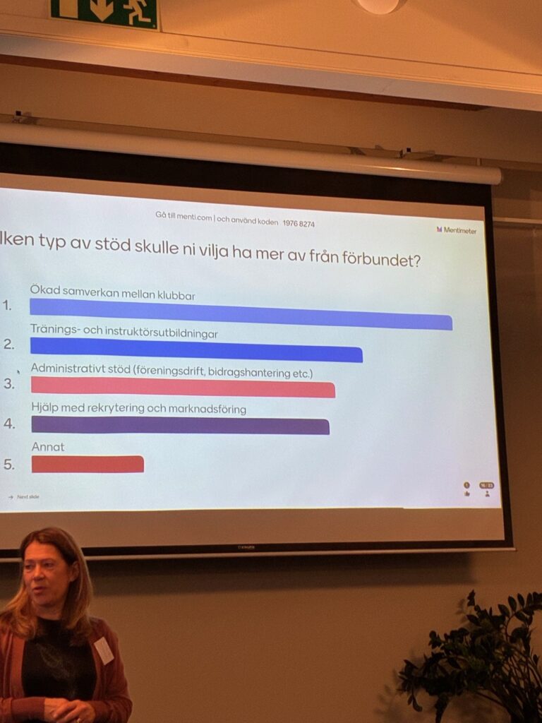 Dagen inleddes med att Föreningskommittén hälsade alla välkomna och presenterade syftet med träffen: att fånga föreningarnas behov och samla värdefulla inspel till förbundets fortsatta strategiska arbete, inte minst inom trygghet och jämställdhet. Efter en presentationsrunda tog dagens första workshop vid, där deltagarna genom Mentimeter och gruppsamtal identifierade de största utmaningarna i sina föreningar.